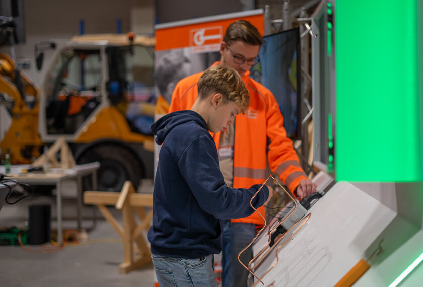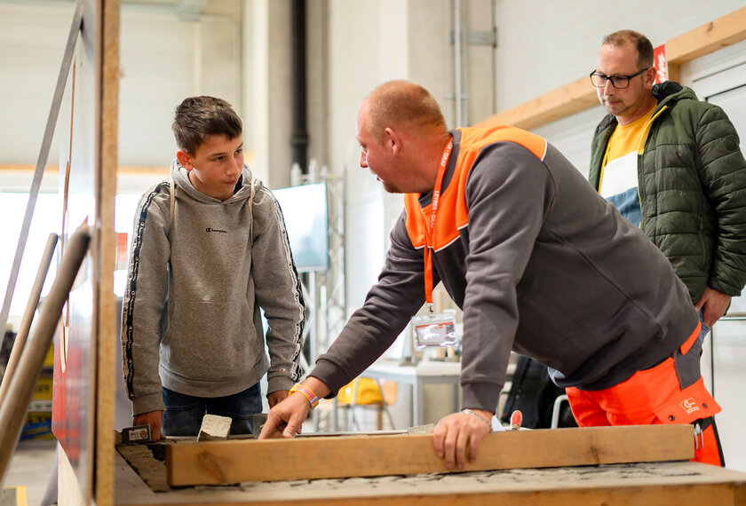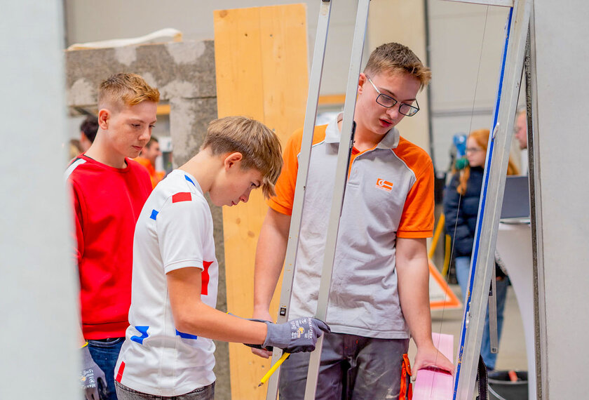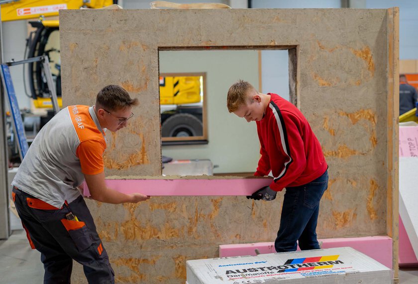 Jugendliche erhielten umfassende Informationen über die Ausbildungsangebote und konnten die Lehrberufe an verschiedenen Stationen praxisnah erleben. Unter Anleitung erfahrener Fachkräfte wurden Tätigkeiten wie die Herstellung einer Fassade, Verlegen von Pflastersteinen oder Installationsarbeiten ausprobiert und dabei wurde mit Werkzeugen und Materialien aus dem Berufsalltag gearbeitet. Dabei bot der Austausch mit aktuellen Lehrlingen wertvolle Einblicke und praktische Tipps. Auch moderne Technologien wie Digitalisierung und Augmented Reality spielten eine zentrale Rolle und zeigten, wie innovativ die Bauwelt heute ist. Ein weiteres Highlight war die Besichtigung des beeindruckenden Holzwerks, das mit modernster Technik überzeugt.