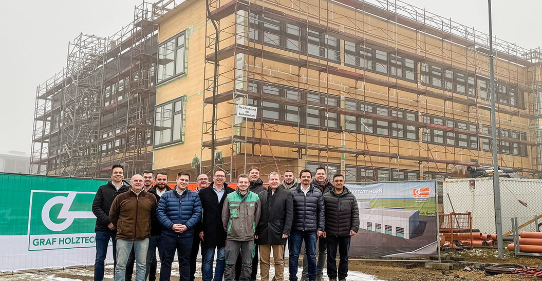 Die Bauarbeiten und Modernisierungsmaßnahmen in die eigene Infrastruktur am Standort Horn schreiten in großen Schritten voran. Mit der Gleichenfeier des neuen Bürogebäudes der Graf‑Holztechnik sowie der betriebseigenen Werkstatt wurde ein weiterer wichtiger Meilenstein am Weg zur geplanten Fertigstellung im Herbst erreicht.