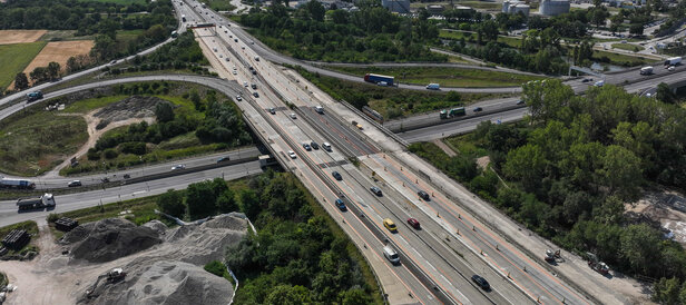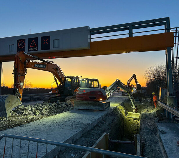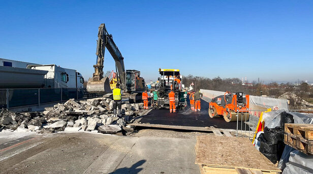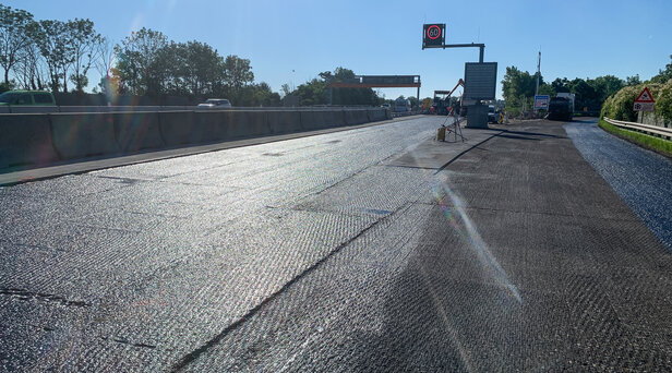 - 27.400 m² SMA 16 Deckschicht bei Rampensanierung und Hauptfahrbahn
