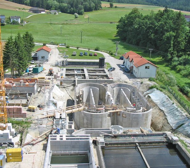 - Neubau von zwei Vorklärbecken und vier Belebungsbecken in serieller Fahrweise