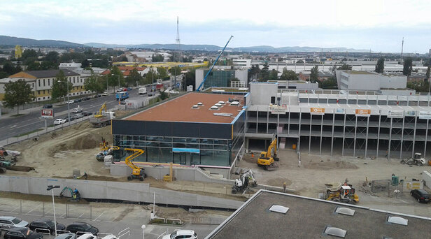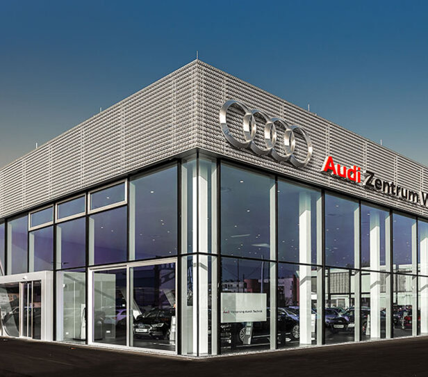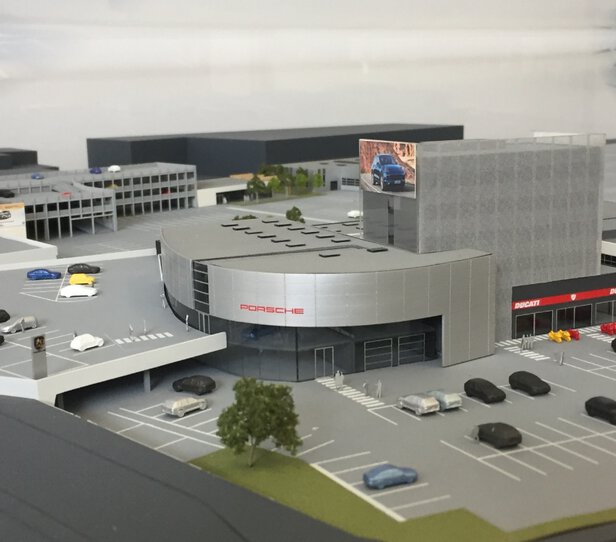 Neu- und Umbau von Schauräumen mit Parkdeck, Werkstätten, einem Karosseriezentrum, einer Kantine und Sozialräumen
