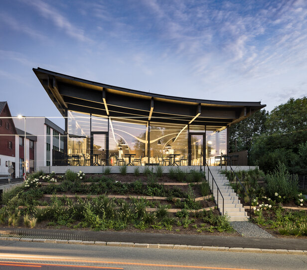 - Errichtung einer geschwungenen Primärkonstruktion samt Dachaufbau