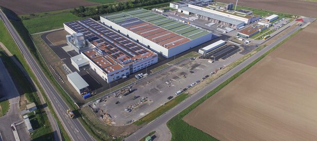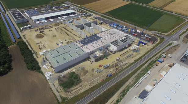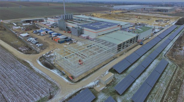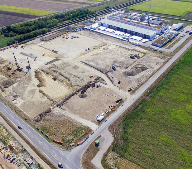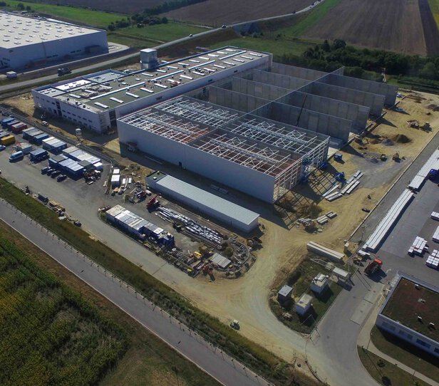 Erweiterung des Werks samt Produktions- und Lagerhalle inklusive Erbau- und Leitungsarbeiten auf einer Gesamtfläche von 55.000 m² (in ARGE).