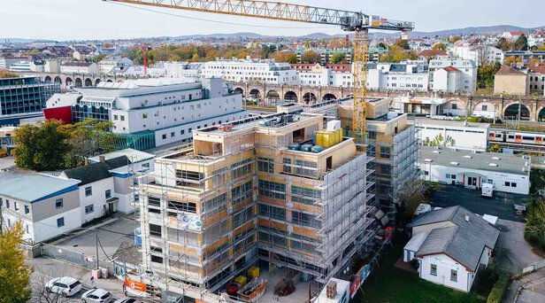 Errichtung eines Bürogebäudes samt Tiefgarage in Stahlbeton Hybridbauweise.