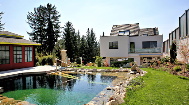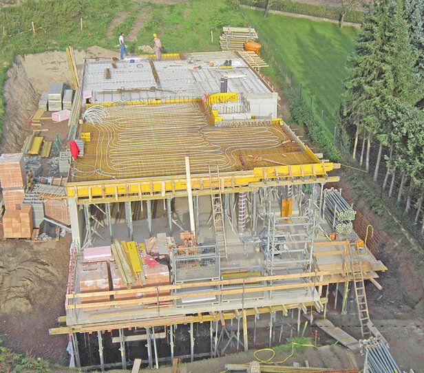 Errichtung eines mehrgeschoßigen Einfamilienhauses in Hanglage