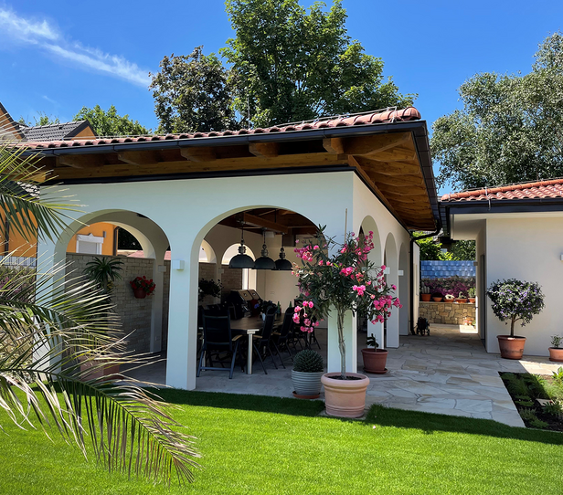 - Errichtung eines Abstellraumes sowie einer überdachten Outdoor-Küche (Pergola)