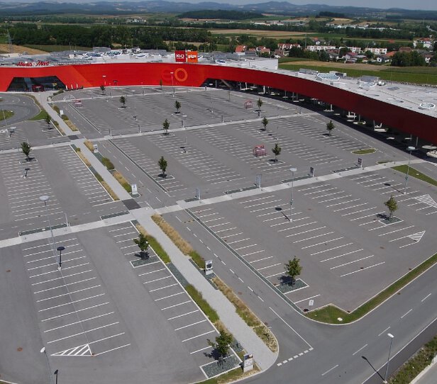 - Neubau einer eingeschoßigen Fachmarktzeile mit elf Geschäften und eines 2-geschoßigen Mallbereiches mit 41 Geschäften
