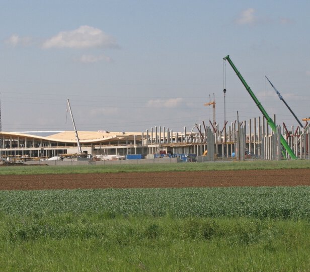 - Errichtung eines 60.000 m² großen, geschwungenen Holzdaches durch die Graf‑Holztechnik