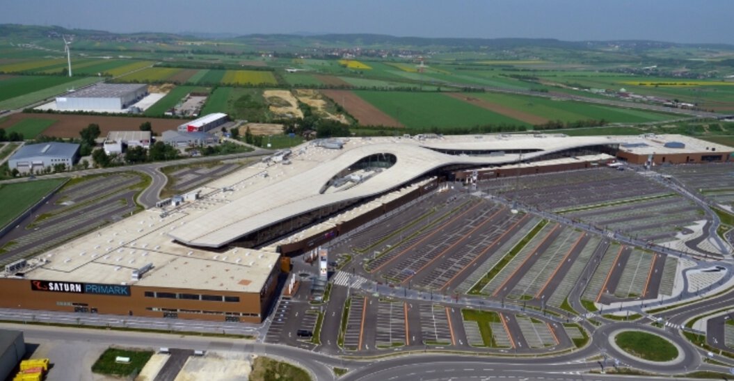 Errichtung eines Shopping-Resorts mit geschlossener Shopping-Mall (teilweise 2-geschoßig), Tiefgarage und 4.000 Außenparkplätzen