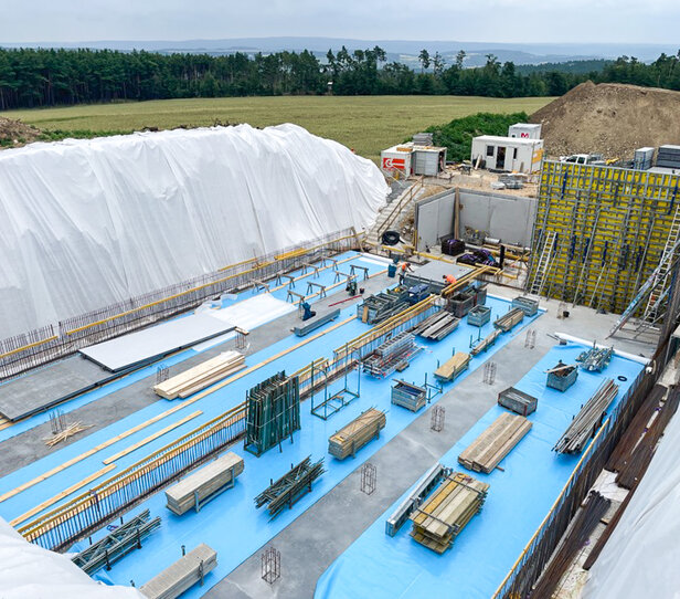 - ca. 975 m³ Beton (BS1A für Weiße Wanne)