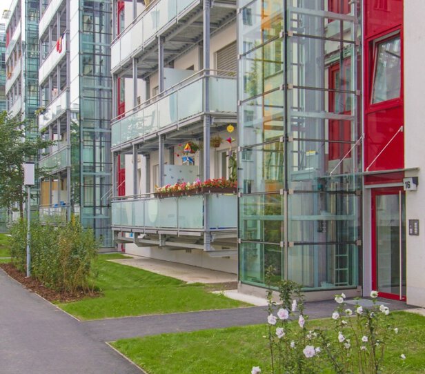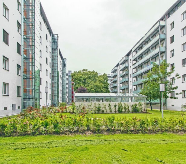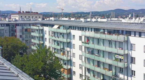 - Fassadeninstandsetzung und Herstellung eines Außenwand-Wärmeverbundsystems (35.000 m², durchgeführt durch unseren ARGE-Partner Praher & Mathä)