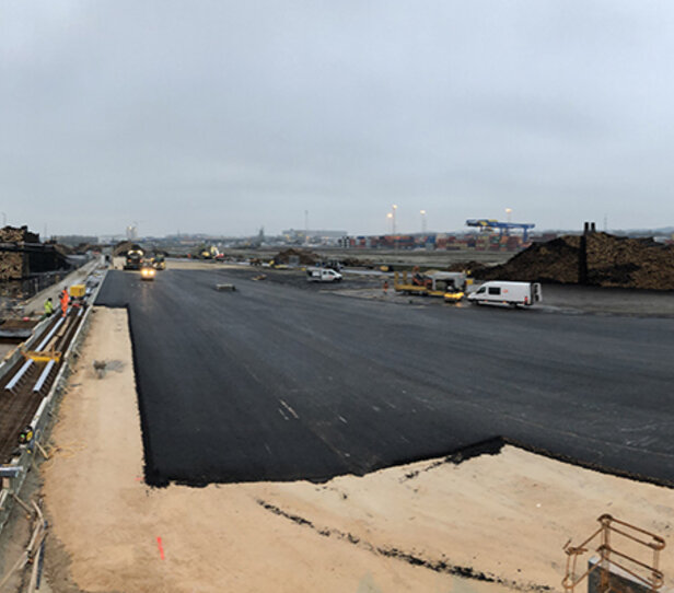 - Schaffung der Lager- und Produktionshallen, des Bürogebäudes und der Außenanlagen