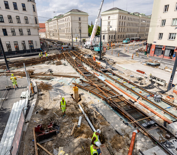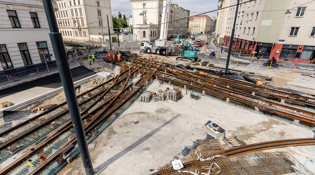 - Errichtung der Straßenbahngleise