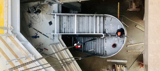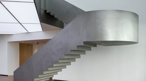 - Errichtung einer freitragenden, glasperlengestrahlten Edelstahltreppe