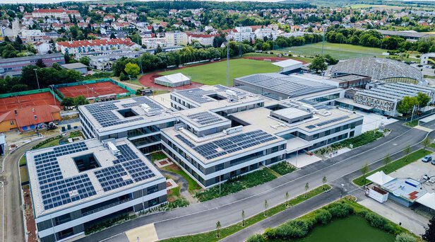 Neubau eines neuen Schulcampus in Mischbauweise (Holz- und Stahlkonstruktion). Der neue Schulcampus beherbergt 20 Volksschulklassen (inklusive Gruppenräume), neun Sonderschulklassen, Räumlichkeiten der Musikschule und der schulischen Nachmittagsbetreuung sowie eine Dreifachturnhalle. Auf dem 58.000 m² großen Grundstück werden ca. 9.200 m² von Leyrer + Graf bebaut.