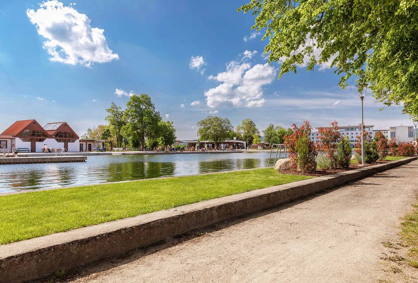 - Seilfähren, Rutschen, Sonnensegel, Wasserfontäne, Trinkbrunnen, Orientierungstafeln