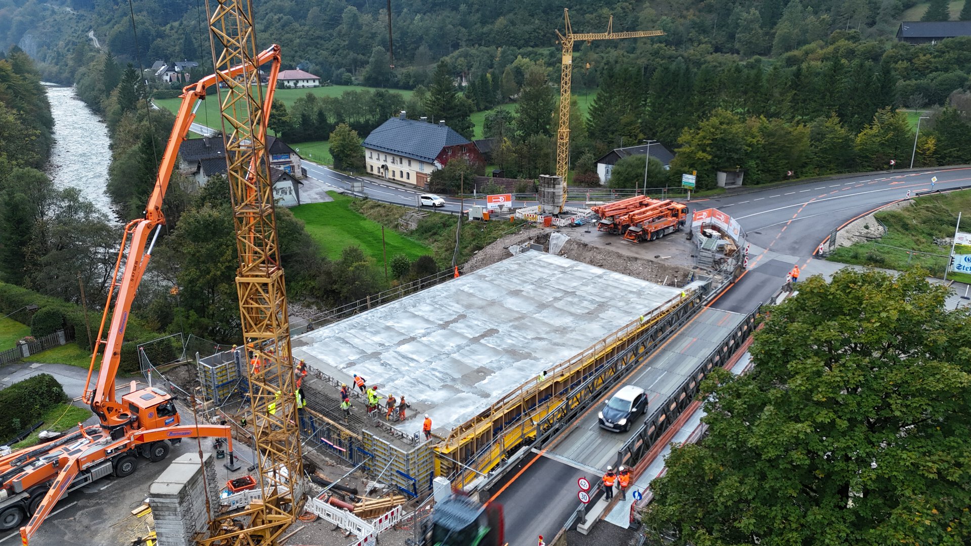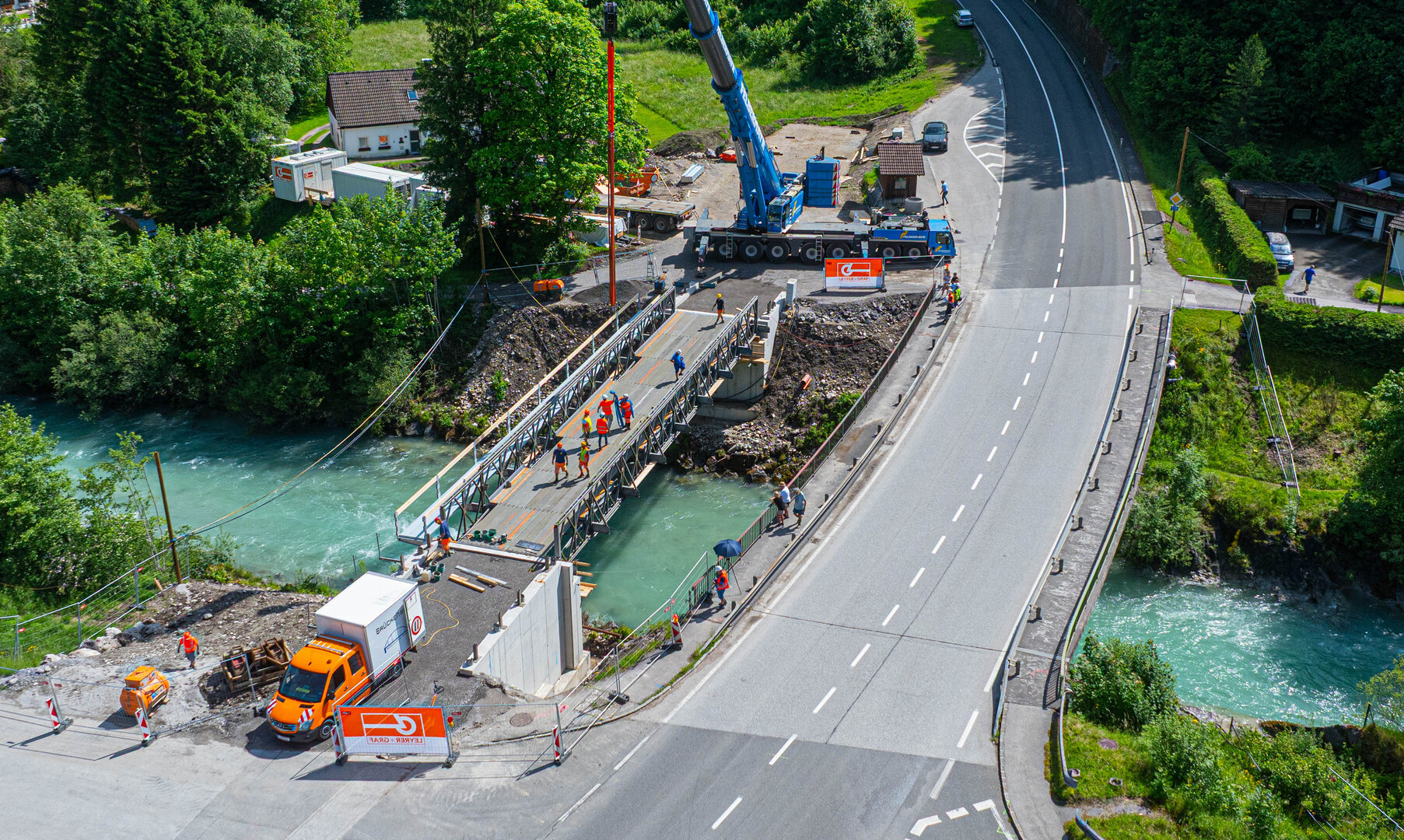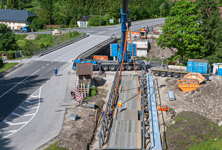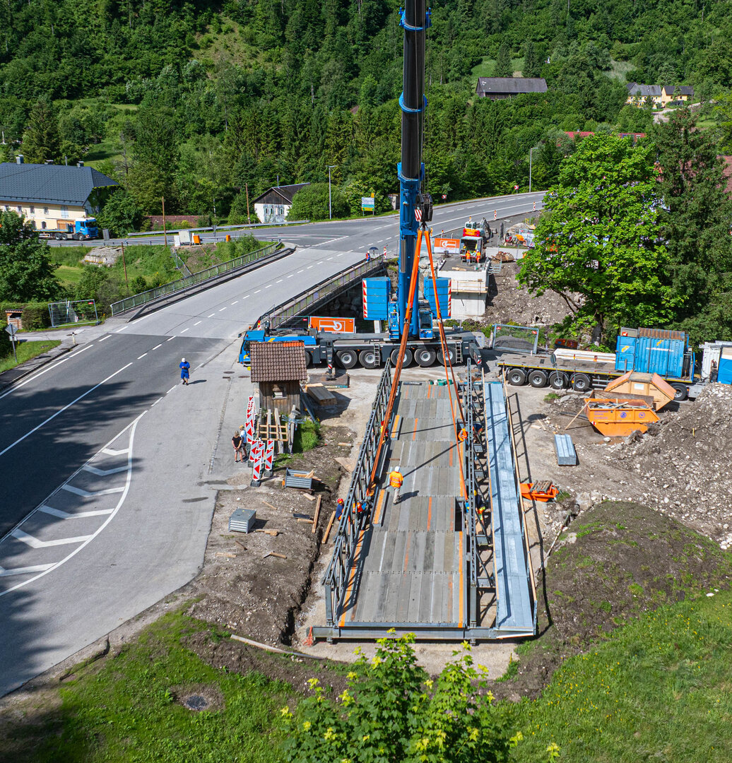 - Einhub der Stahlbehelfsbrücke (als auch deren Aushub)