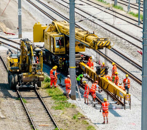 - Verlegen von Gleisgestängen und Weichen auf Schotteroberbau