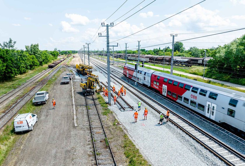 Oberbauarbeiten in Strasshof an der Nordbahn.