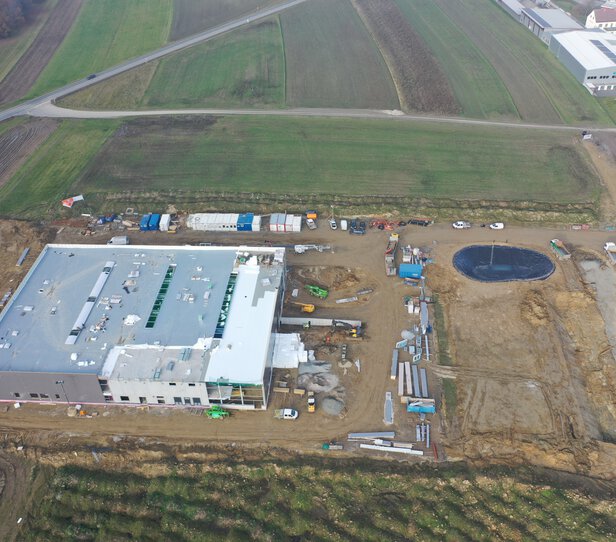 Errichtung einer Produktionshalle inkl. zweigeschoßigem Bürokomplex und Technikbereich.