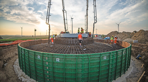 Fundamentherstellung für zwei neue, leistungsstärkere Anlagen im bestehenden Windpark