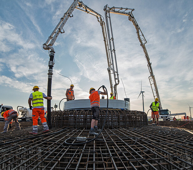 - Herstellung von zwei Fundamenten mit je 16,5 m Durchmesser
