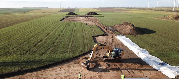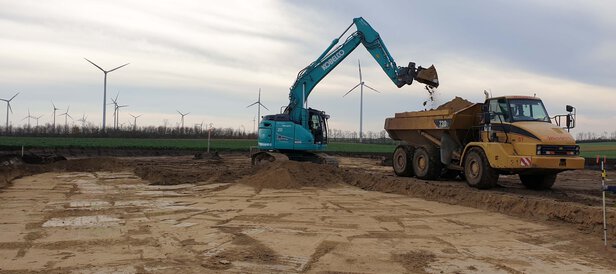 - Hinterfüllung und Überschüttung von 70.000 m³ Fundament