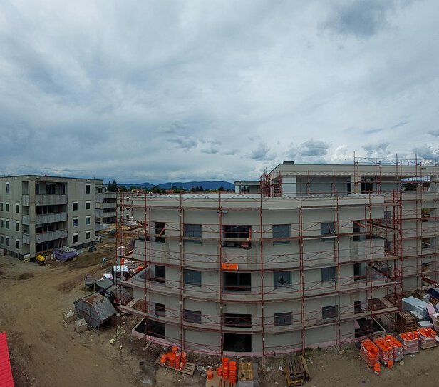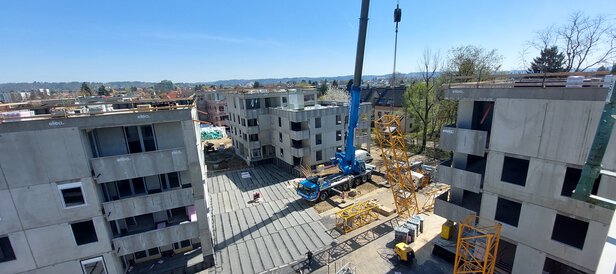 Die größte Herausforderung bei den Rohbauarbeiten war die Herstellung der Tiefgarage und der Kellergeschoße aufgrund des hohen Grundwasserspiegels.