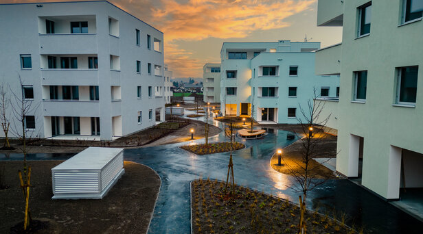 Die Konzeption des Wohnbauprojektes „Wohnen im Park“ umfasst insgesamt 154 Wohnungen, aufgeteilt auf sieben Häuser, in den Größen von 36 bis 80 m² Wohnfläche. Alle Wohnungen haben entweder private Gartenanteile, einen Balkon oder eine große Dachterrasse. Die Lage der neuen Wohnhausanlage befindet sich in Mitten eines 15.000 m² großen grünen Grundstückes in unmittelbarer Nähe zum Naherholungsgebiet des Mur Radweges.