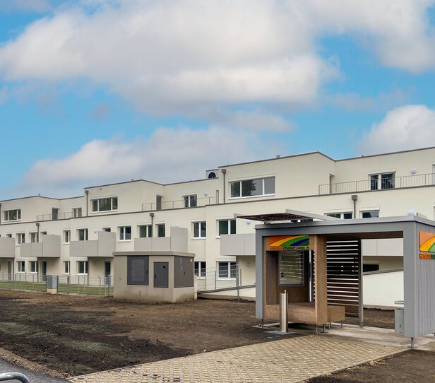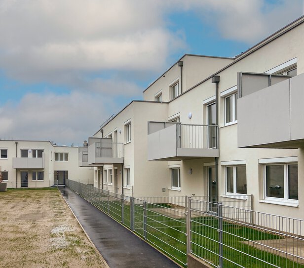 Erbaut wurde eine Wohnhausanlage mit 36 Wohnungen auf drei Geschoßen mit Freiflächen (Terrassen, Balkone, Dachterrassen) und einer Tiefgarage.