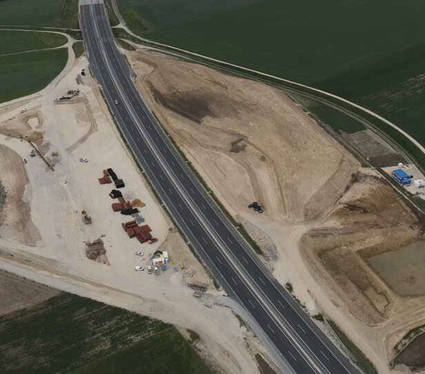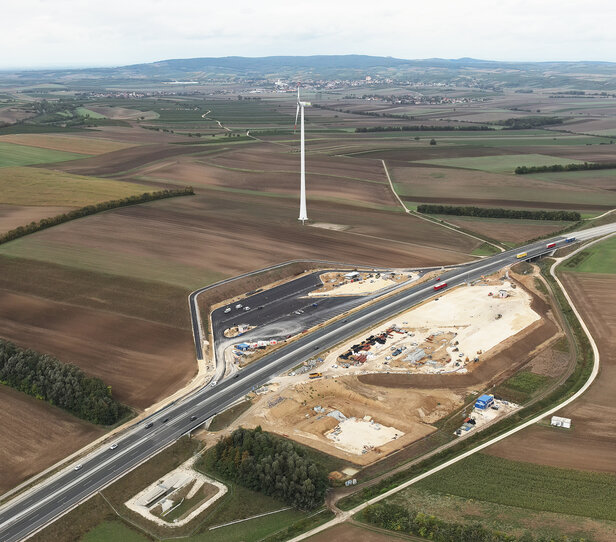 Der gesamte Erdbau wurde in nur knapp 1,5 Monaten komplett abgeschlossen (inkl. Vorlastschüttung). Hierbei waren Tagesleistungen von etwa 7.000 m³ Abtrag am Rastplatz Poysdorf West und Schüttung bzw. Stabilisierung am Rastplatz Poysdorf Ost erforderlich.