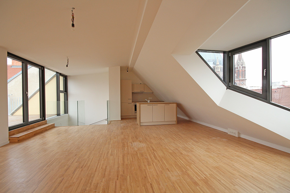 Leyrer + Graf sicherte sich bei der diesjährigen Verleihung den 1. Platz mit der Sanierung eines dreistöckigen Gründerzeithauses, welches nicht nur eine neue Straßenfassade erhalten hat, sondern auch im Inneren adaptiert wurde, wie der Zusammenlegung von mehreren Altbauwohnungen, um großzügige Wohnräume zu schaffen. Der ehemalige „WC-Turm“ wurde in einen „Terrassenturm“ mit hofseitigen Loggien und Balkonen umstrukturiert. Das im Innenhof befindliche Werkstattgebäude wurde zum Atelier bzw. Maisonette adaptiert. Auch das Dachgeschoß wurde in Holzrahmenbauweise neu ausgebaut und die Dachflächen durch Gaupen geöffnet. Die Energieeffizienz der Gebäude wurde durch die Dämmung der Fassaden und die Solaranlage am Dach wesentlich verbessert. Der Aufzugsanlagenzubau in Stahl-Glas-Konstruktion im Innenhof ermöglicht eine barrierefreie Erschließung des Straßentrakts.