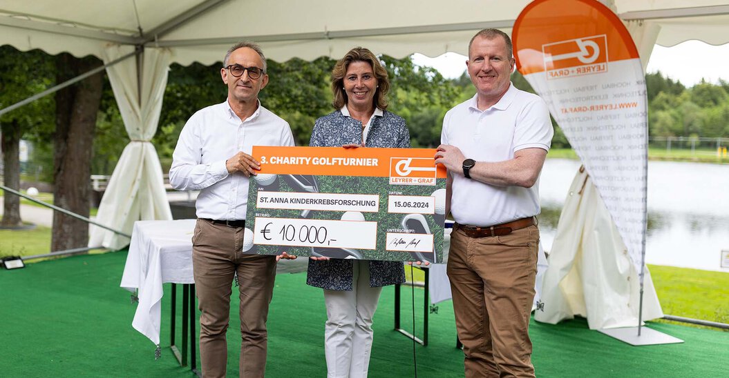 Vor kurzem fand das dritte Leyrer + Graf Charity Golfturnier zur Unterstützung der St. Anna Kinderkrebsforschung statt. Zahlreiche Teilnehmer kamen auf der Anlage des GC Weitra Hausschachen zusammen, um im „Texas Scramble“-Modus Golf zu spielen und Spenden zu sammeln. Eine besondere Herausforderung war das „Spezialloch“, bei dem die Spieler gegen eine kleine Spende mit Bauhandschuhen und Schutzbrillen Golfbälle in Betonringe chippen mussten.