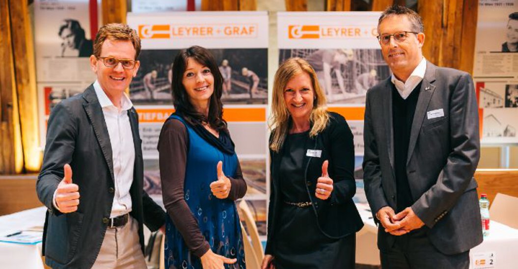 Unsere Firmenvertreter vor Ort, BM Dipl.-Ing. Stefan Graf, Dipl.-Ing. Michael Bauer, BM Dipl.-Ing. Bernhard Egert MBA und Dipl.-Ing. Adolf Aichinger - unterstützt von unserem HR-Team, Sabine Leutner MSc und Dagmar Hillinger.