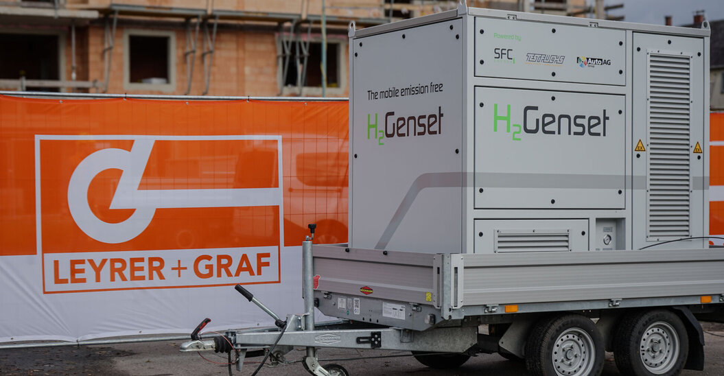 Im Rahmen des Forschungsprojekts „H2 LIVE am Bau“, bei dem Leyrer + Graf einer der Kooperationspartner ist, testeten wir zwei Wochen lang das Wasserstoffaggregat „H2Geset“, welches in Zusammenarbeit der Unternehmen Test-Fuchs, Auto AG und SFC-Energy entwickelt wurde. Durch den Einsatz von Wasserstoff betriebenen Stromgeneratoren kann eine klimaneutrale, leise und effiziente Stromversorgung auch auf Baustellen gewährleistet werden.