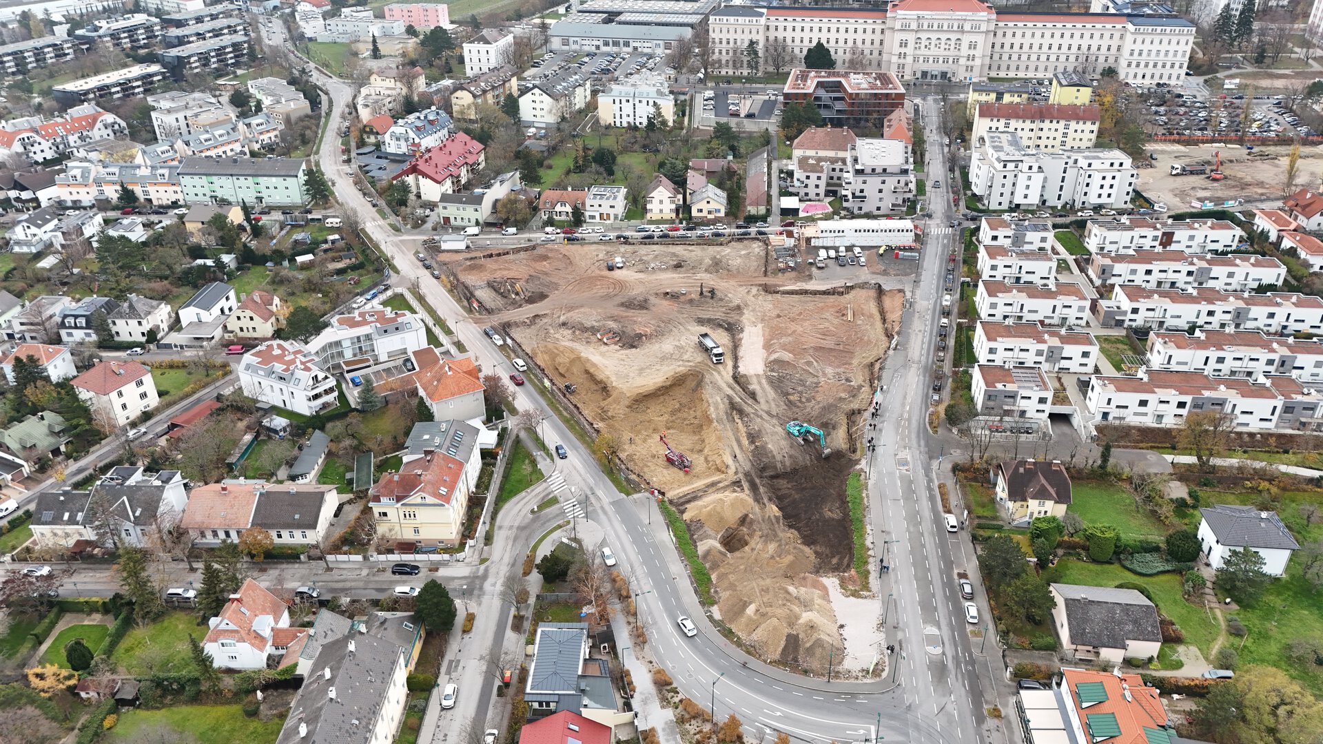 Derzeit laufen die Arbeiten am Rohbau des Untergeschoßes. Erste Deckenarbeiten sind bereits im Gange, der Rohbau soll bis Oktober 2025 abgeschlossen sein.