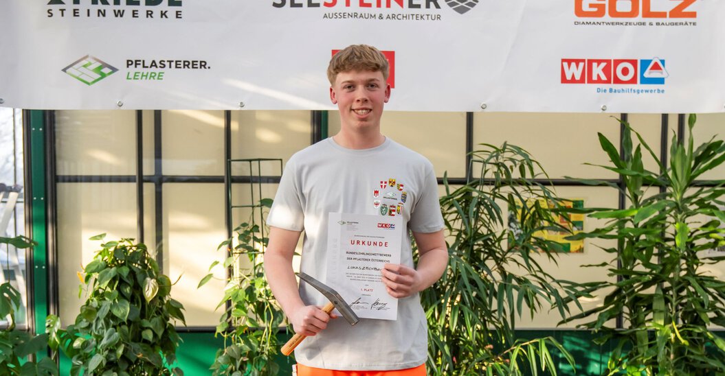 Beim zweitägigen Bewerb traten 15 Lehrlinge aus ganz Österreich gegeneinander an und meisterten anspruchsvolle Aufgaben wie Naturstein-Trockenmauerwerk, Kleinsteinpflaster und Betonpflaster. Mit seiner präzisen Ausführung, sauberen Schnitttechniken und seinem besonderen Gespür für Gestaltung überzeugte Lukas Zöchbauer die Jury auf ganzer Linie. Sein Erfolg zeigt, welche hohe handwerkliche Qualität und Leidenschaft im traditionsreichen Beruf des Pflasterers stecken.